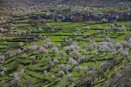 Gercüş ilçesine bağlı Çiçekli Köyü’nde bulunan ağaçların çiçek açmasıyla bi..