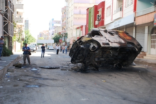 PTT'ye ait olan zırhlı araç göstericiler tarafından ateşe verilerek kullanılamaz hale getirildi.