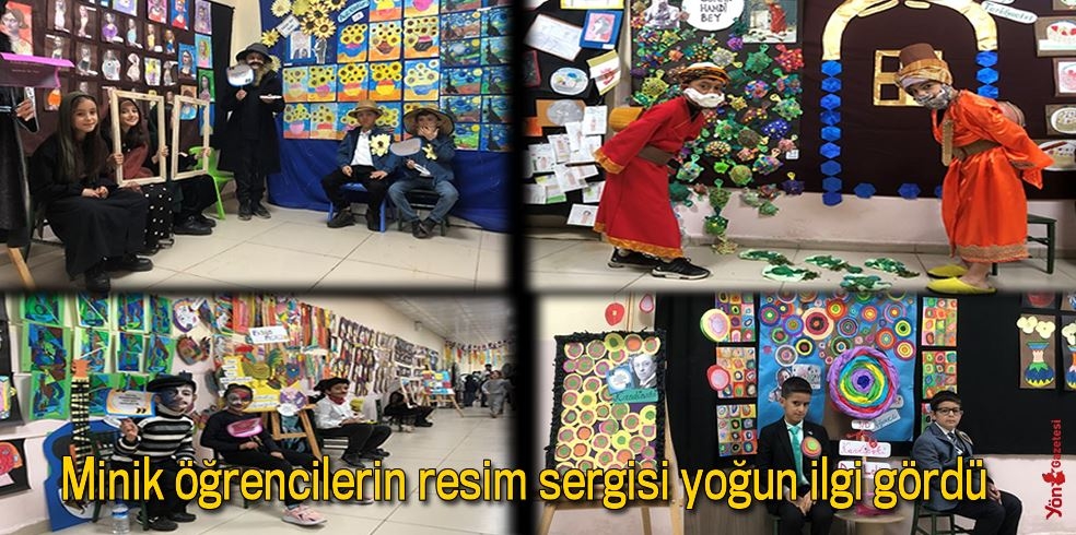 Minik öğrencilerin resim sergisi yoğun ilgi gördü..